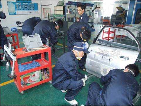 老師們親自實(shí)操鈑金修復(fù)